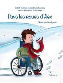 « Dans les roues d’Alex » raconte les aventures d’Alexandre, un jeune handicapé moteur, scolarisé